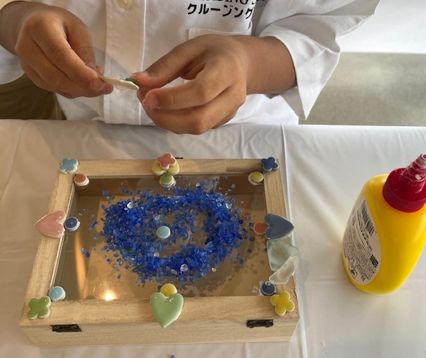 貝殻、シーグラス、ガラスタイルなどを使用して